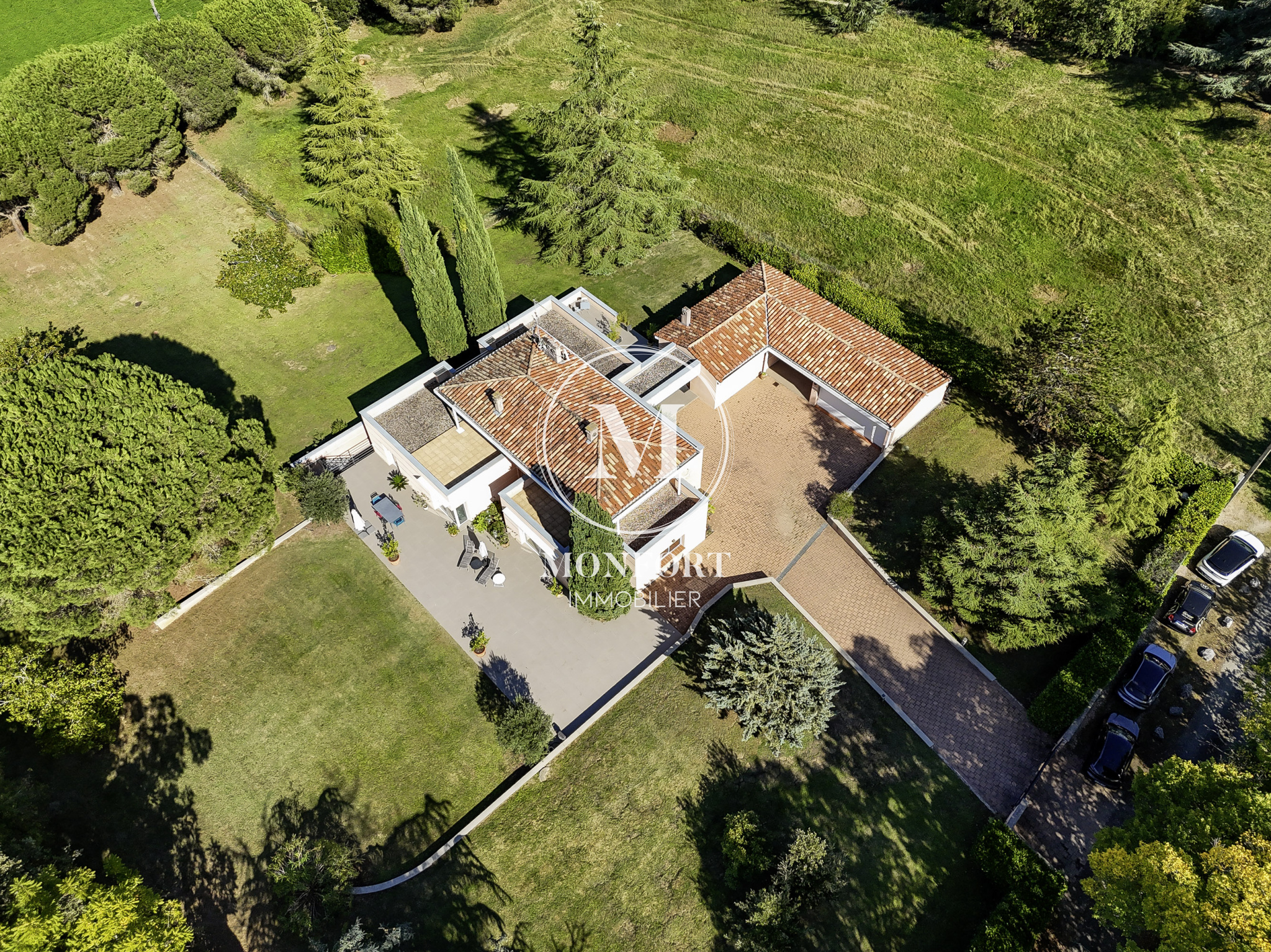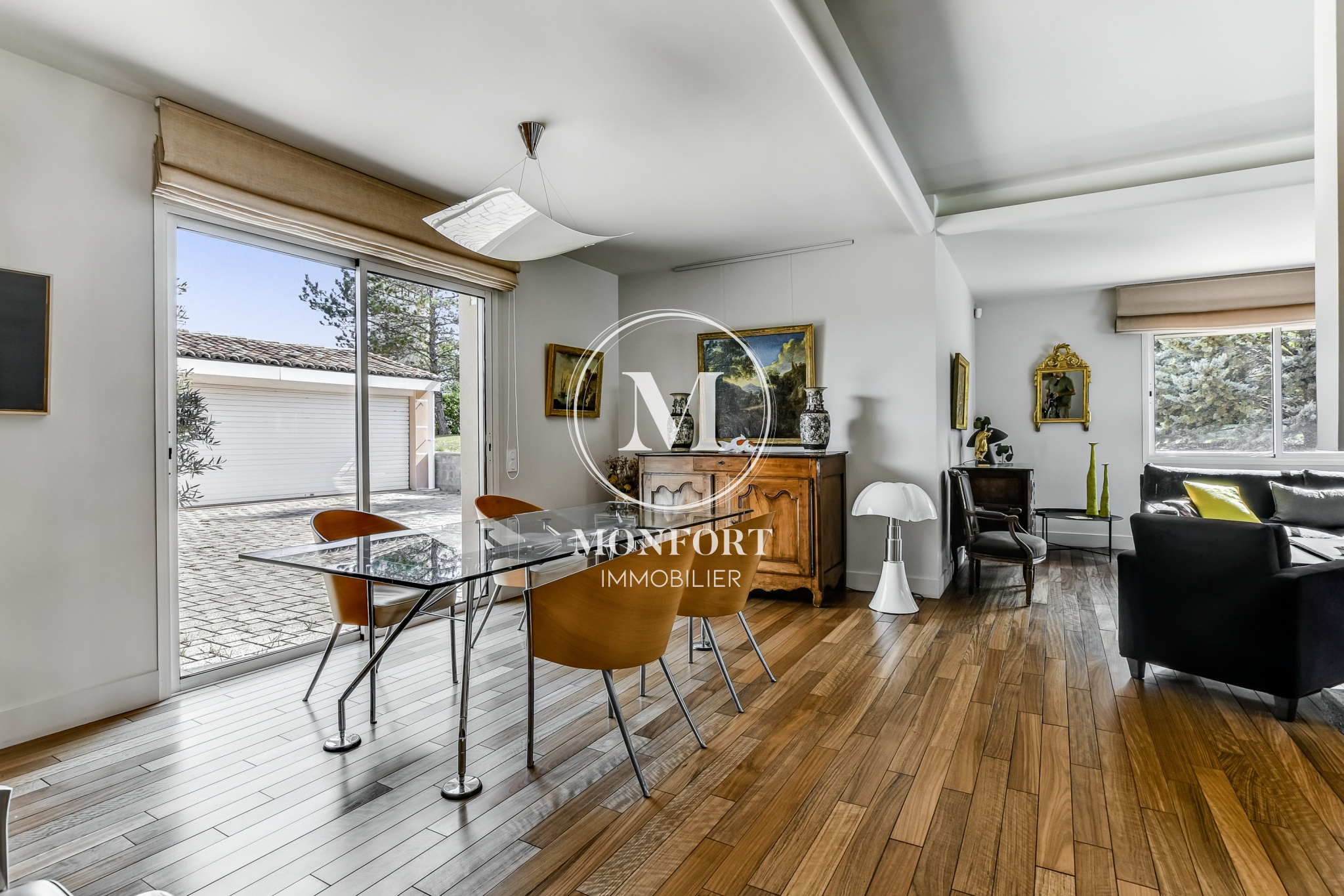 À Castelmaurou, dans un environnement privilégié, découvrez cette maison d’architecte d’environ 220 m2, nichée sur une parcelle arborée de 4000 m2 environ au charme d’un véritable parc, piscinable.