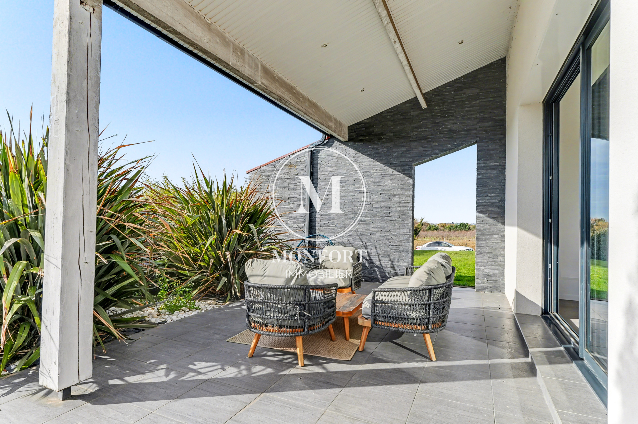 La parcelle, entièrement dégagée, offre une vue agréable sur les champs et garantit une parfaite intimité.