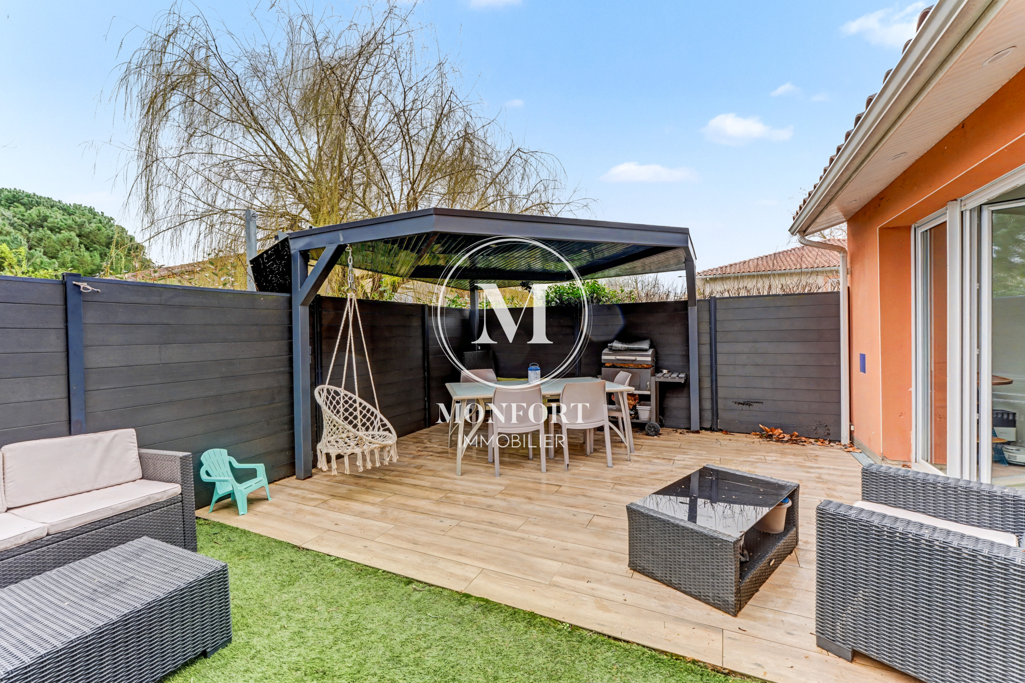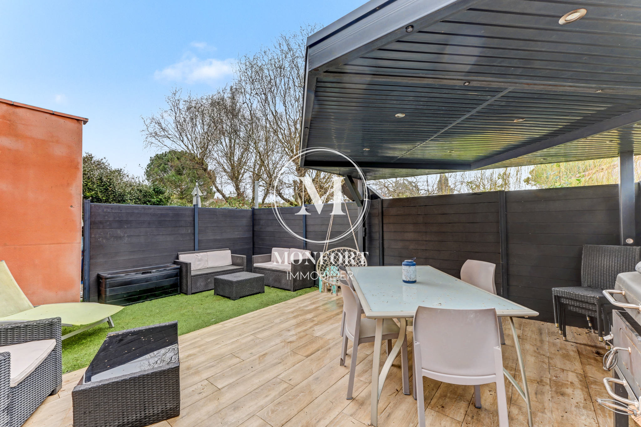Côté extérieur :Le jardin d’origine sans vis à vis (environ 80 m2) a été aménagé en grande terrasse conviviale avec pergola, créant un véritable espace de vie supplémentaire, facile d’entretien et idéal pour recevoir.