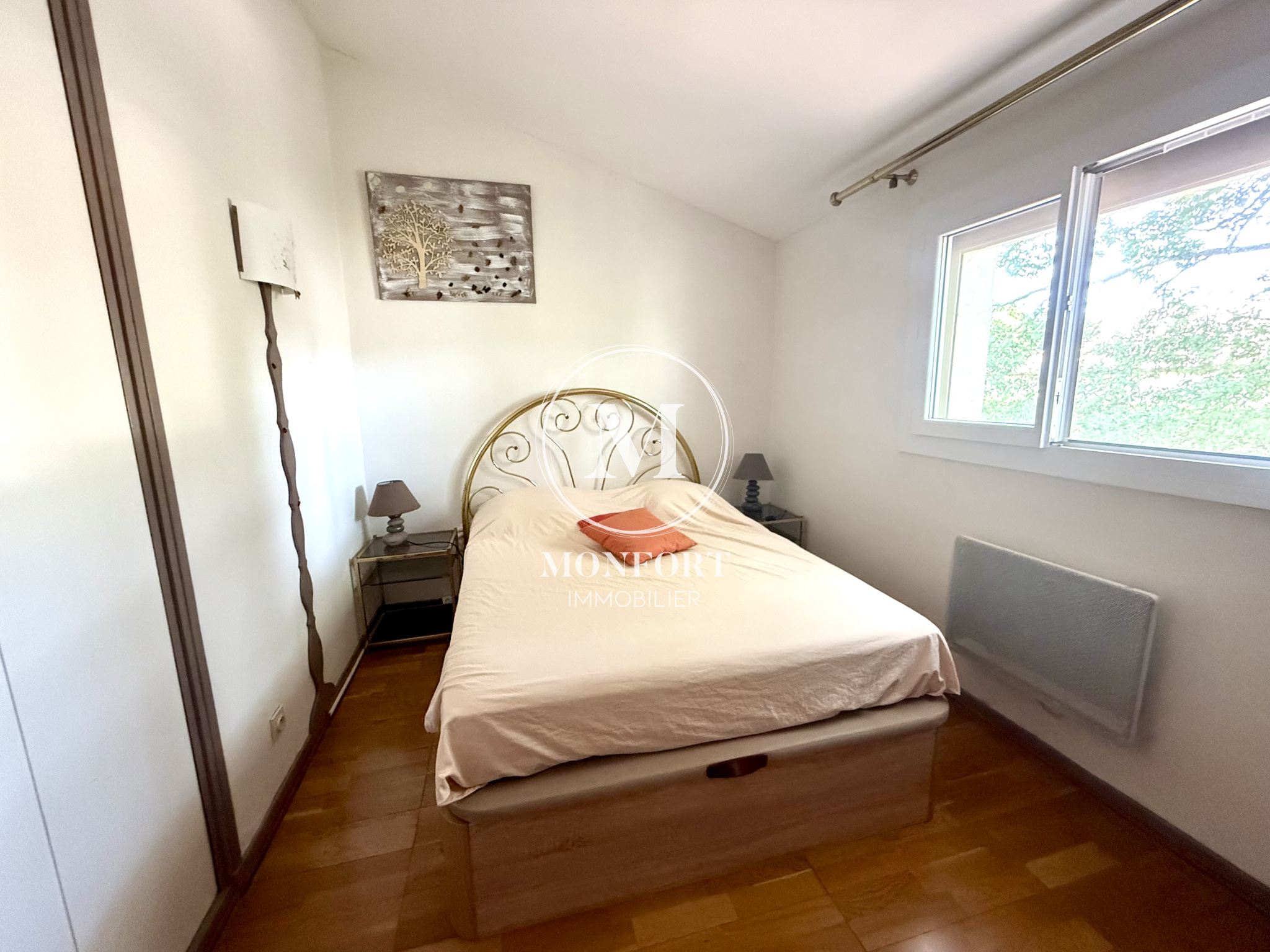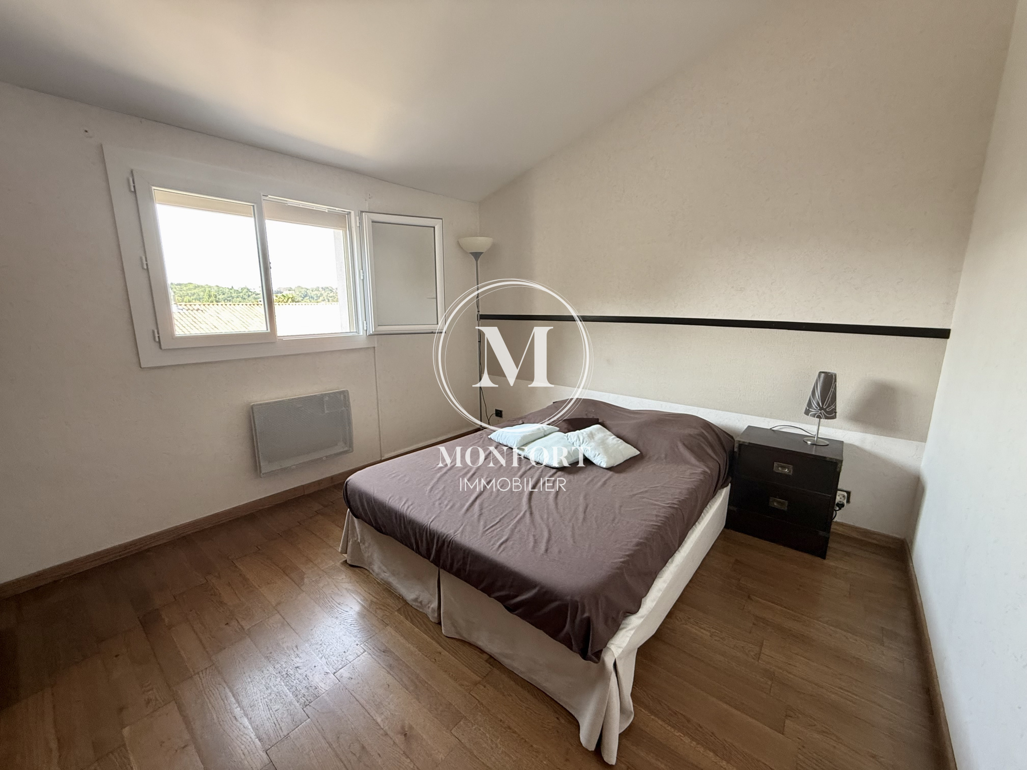 Au premier demi-niveau, deux chambres et une salle d’eau moderne se partagent l’espace. Le second demi-niveau comprend également deux chambres, accompagnées d’une seconde salle d’eau et d’un WC séparé.