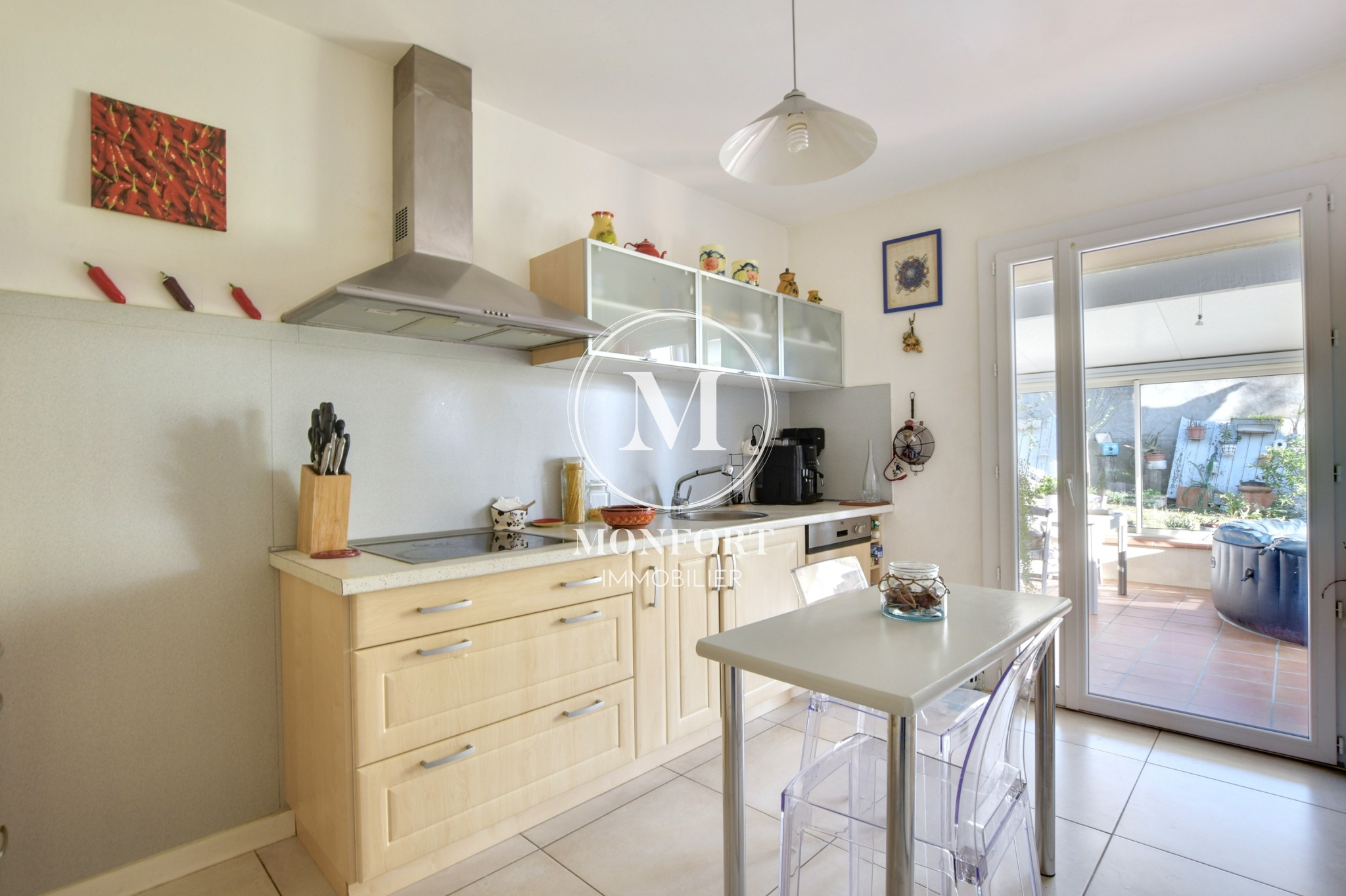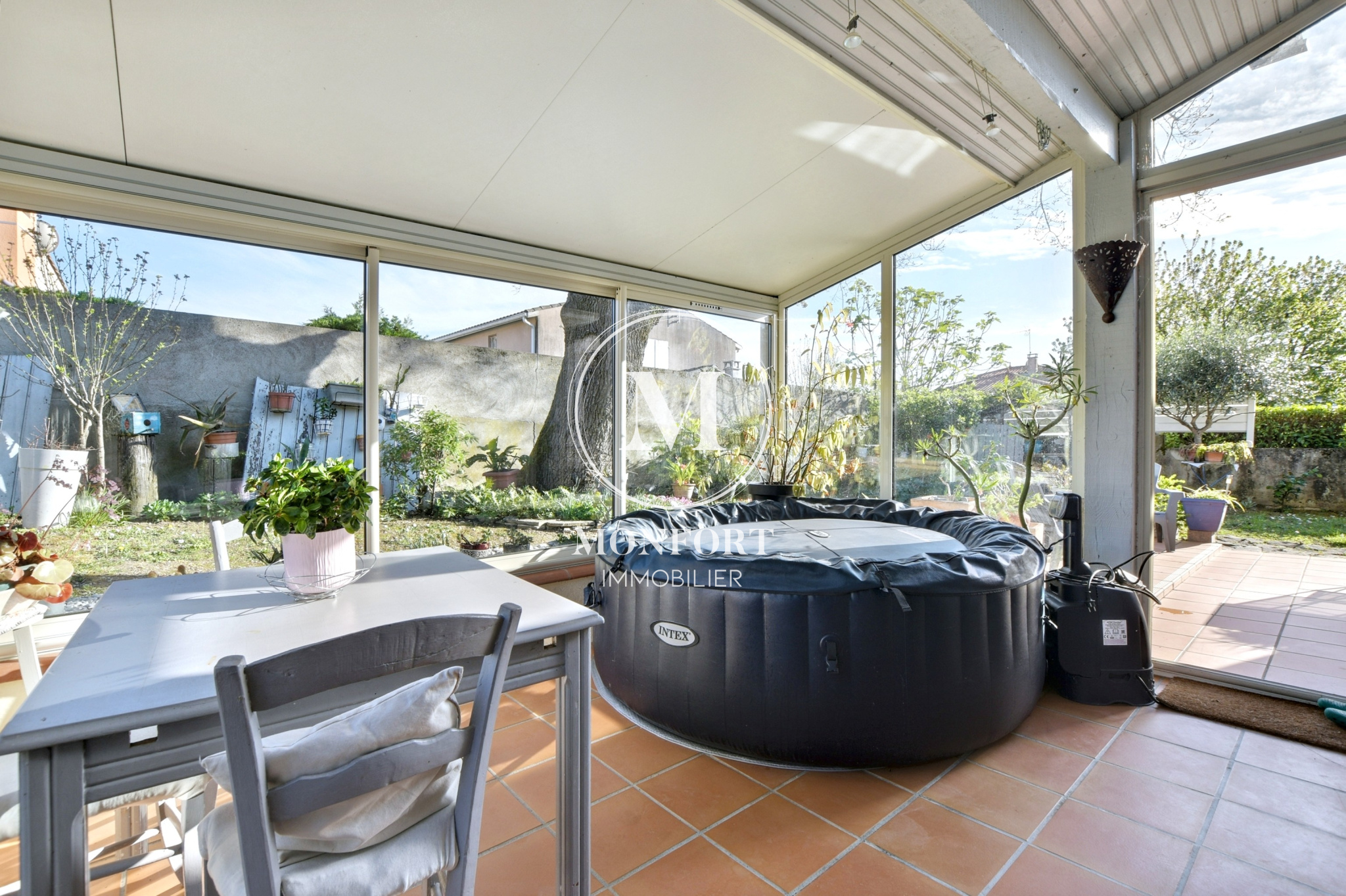 Les prestations sont au rendez-vous : cumulus thermodynamique, climatisation réversible dans le séjour, double vitrage avec volets roulants motorisés et centralisés, moustiquaires dans les chambres, porte d’entrée haut de gamme, tableau électrique récent, rives en PVC, gouttières en aluminium, portail et porte de garage motorisés, isolation des combles refaite.