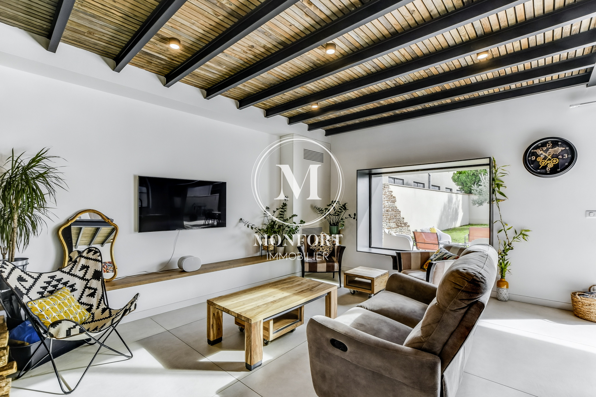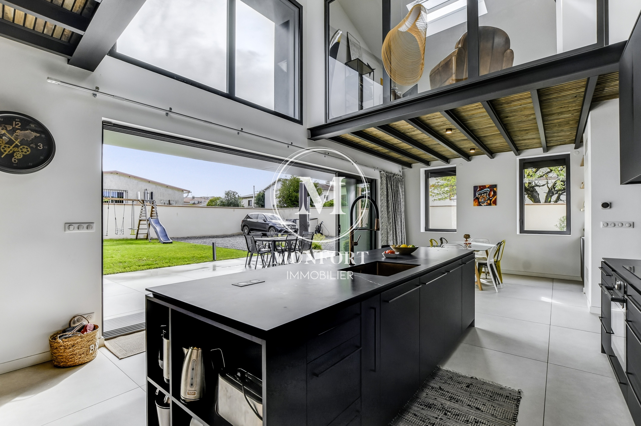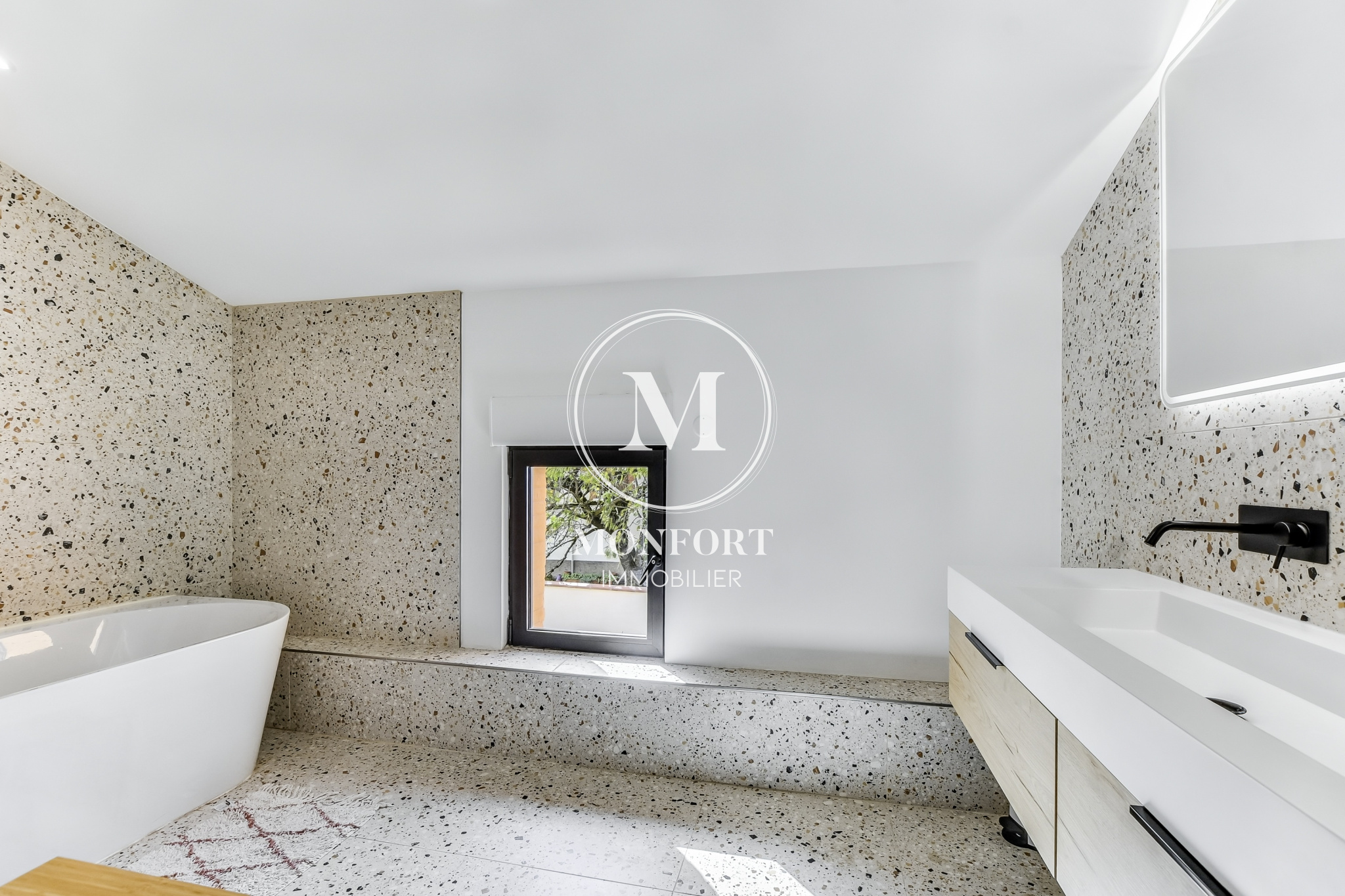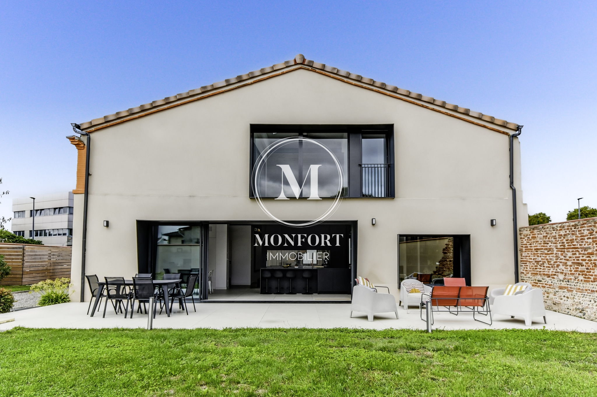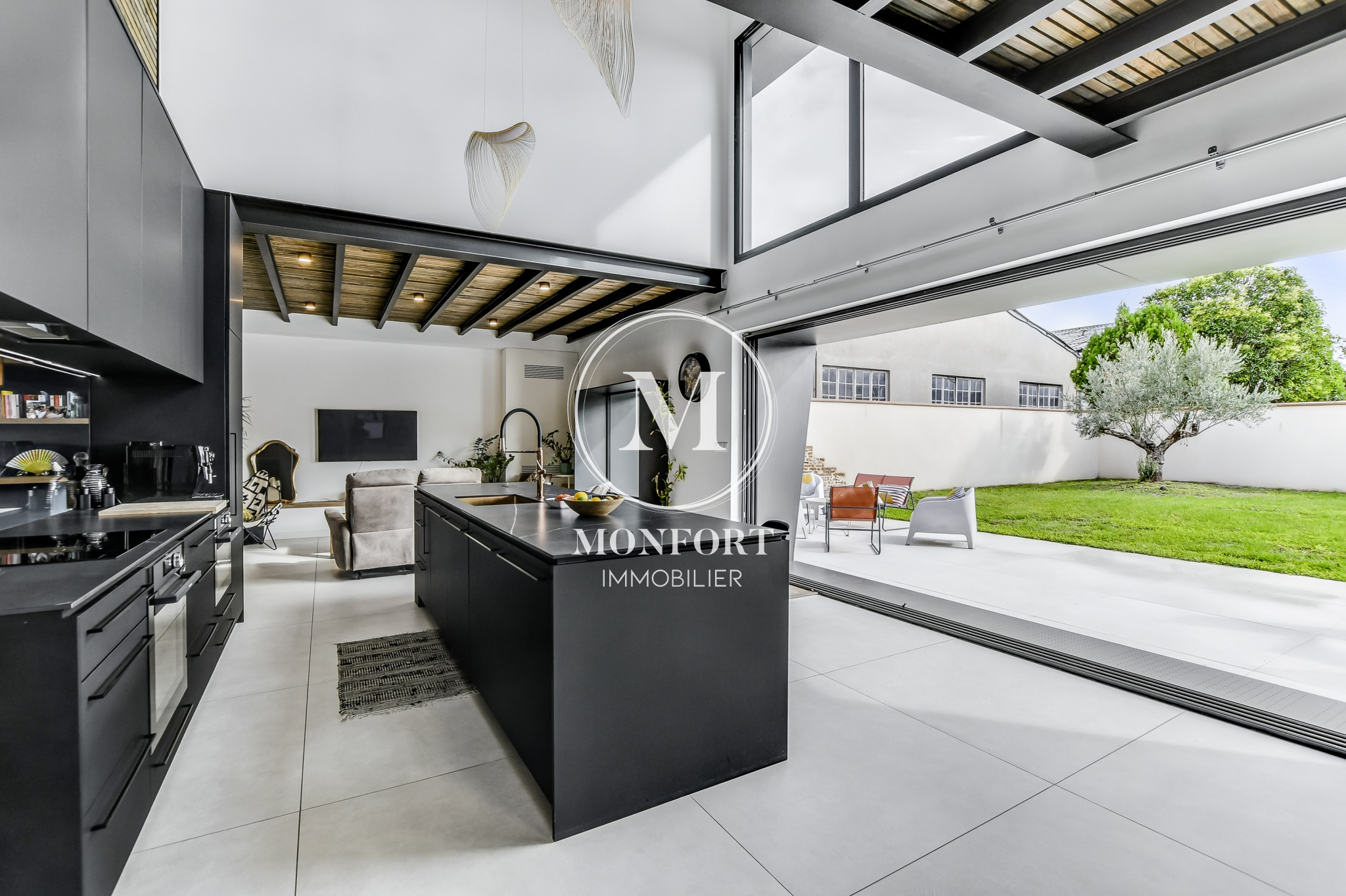 L’ensemble s’ouvre sur une terrasse de 80 m2 et un jardin intimiste de 540 m2 entièrement clos.
