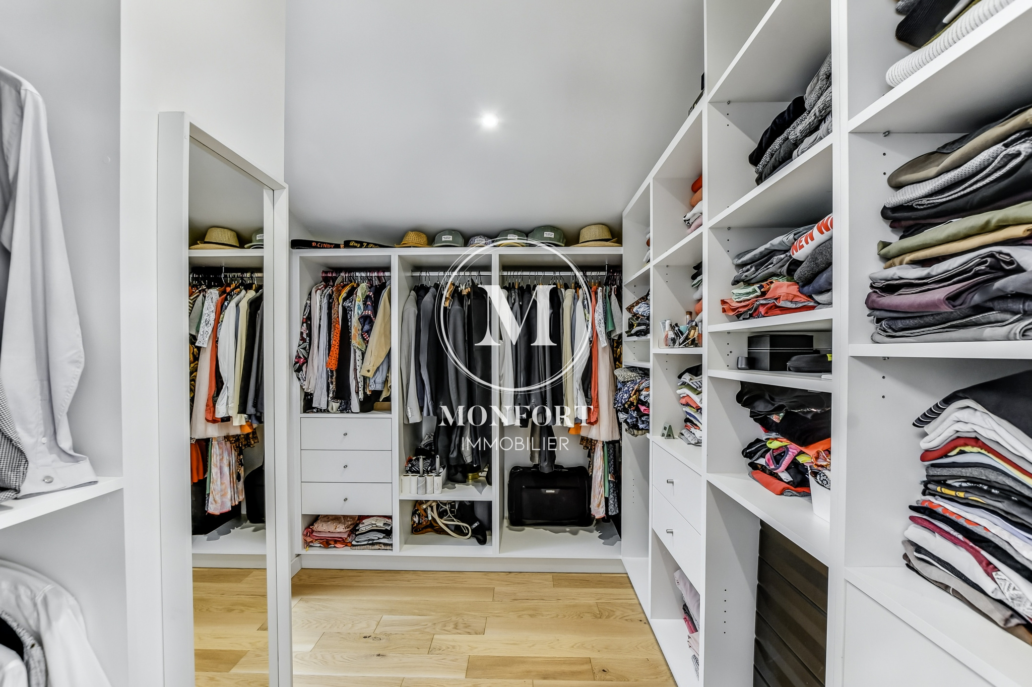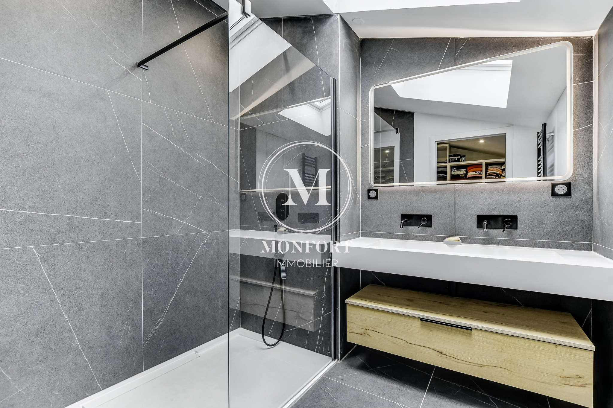 Au rez-de-chaussée se trouvent également une chambre avec salle d’eau privative, un espace buanderie et des rangements sur mesure.
