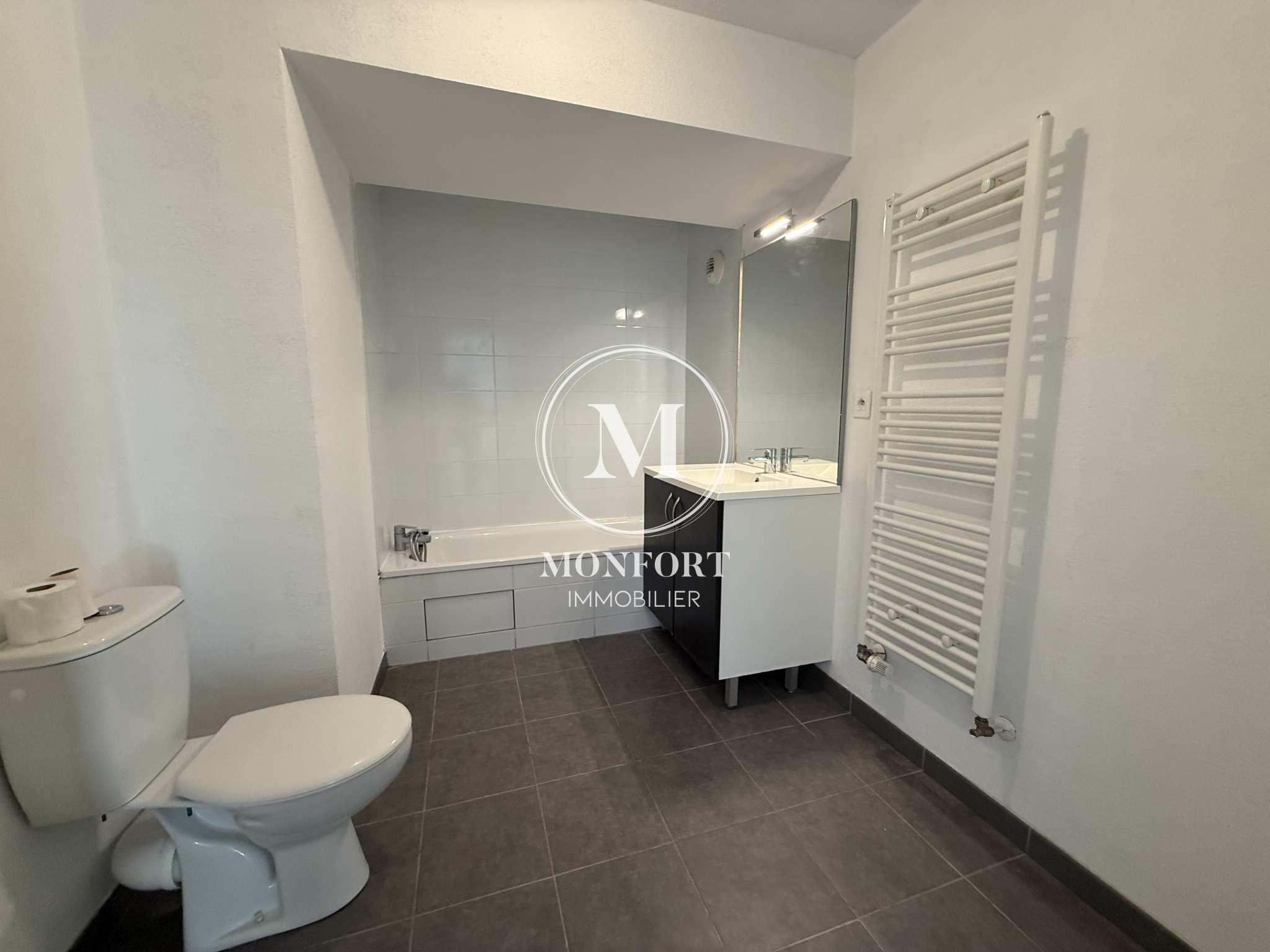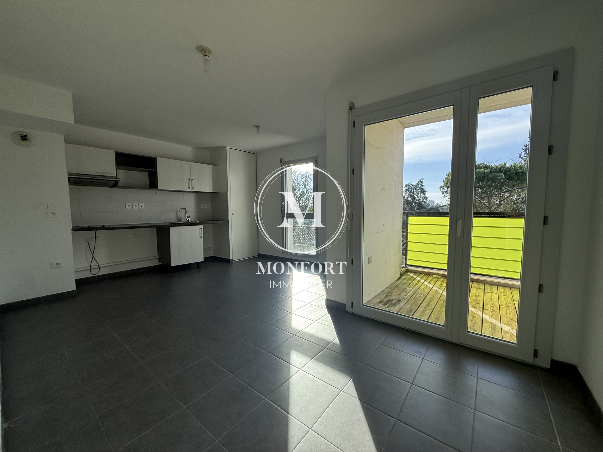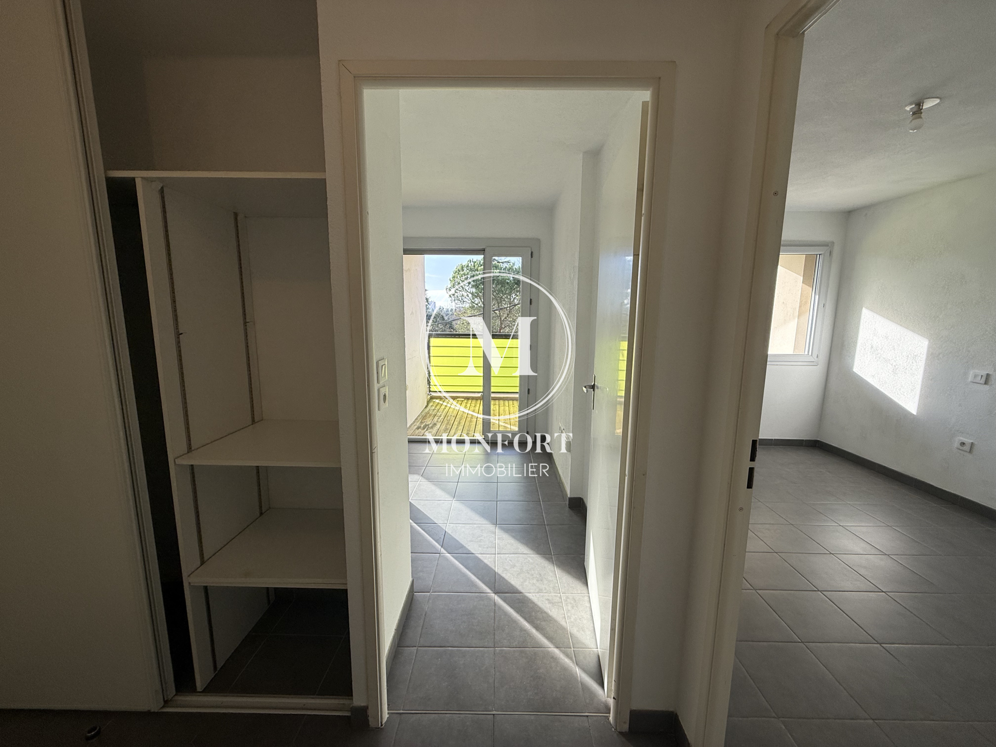 L’entrée avec placard s’ouvre sur une pièce à vivre de 20m2 environ avec cuisine ouverte, donnant sur une terrasse de 8,5m2 exposée sud. Chambre spacieuse de 12,5m2 avec placard et une salle de bain avec wc.