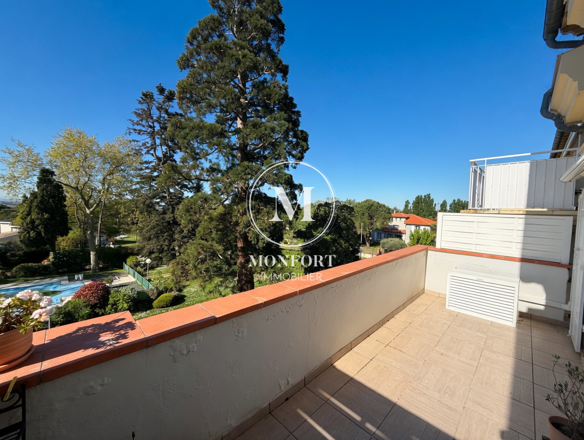 L’ensemble s’ouvre sur un magnifique balcon de 13 m2 exposé plein sud, avec store électrique, offrant une vue dégagée exceptionnelle jusqu’aux Pyrénées.